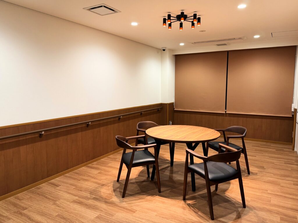 ● 談話室では、家族との時間だけでなく、ご友人が来られた時でも楽しいひと時を過ごせます。