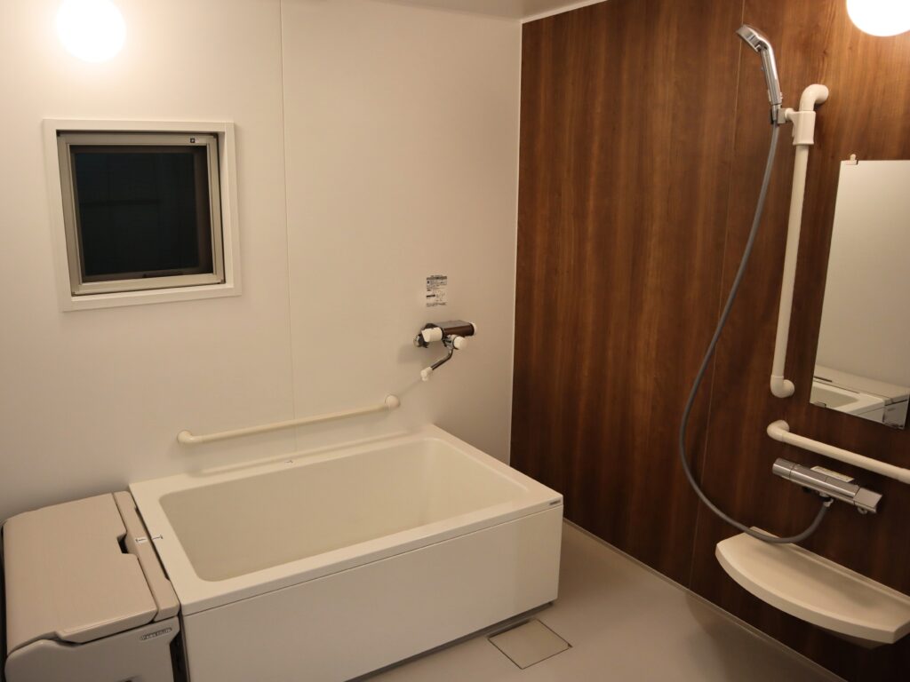 ● 車椅子でもゆったり使える広々としたトイレ・浴室。